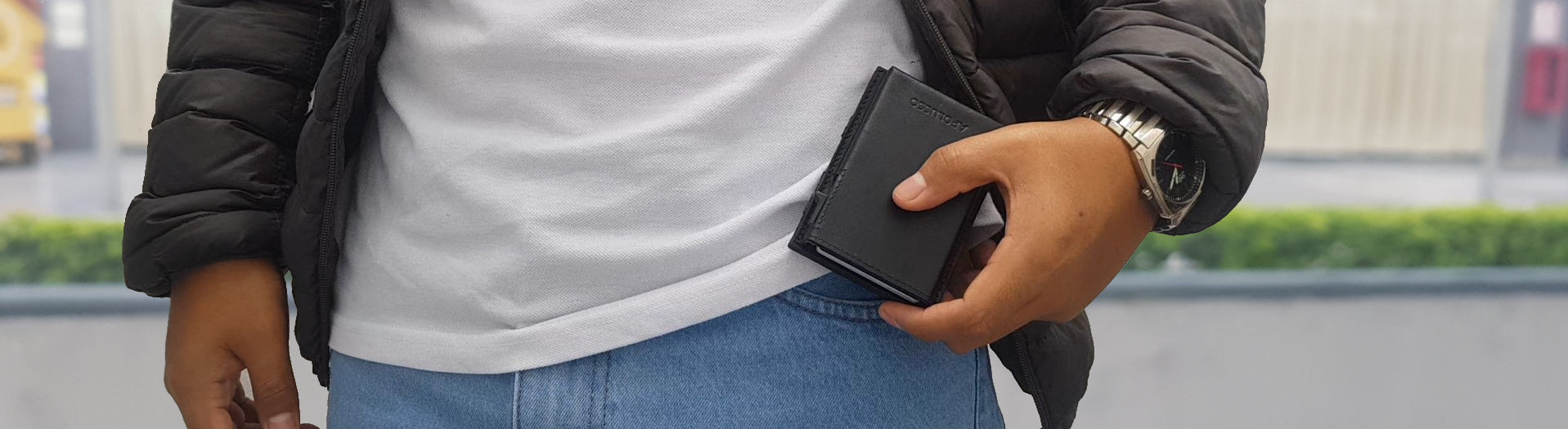 🔹 Billetera Apolo: Cuenta con un tarjetero con botón para hasta 6 tarjetas, un compartimiento para DNI, un compartimiento oculto y otro adicional para tarjetas. Además, pueden guardarse hasta 15 billetes sin doblar.