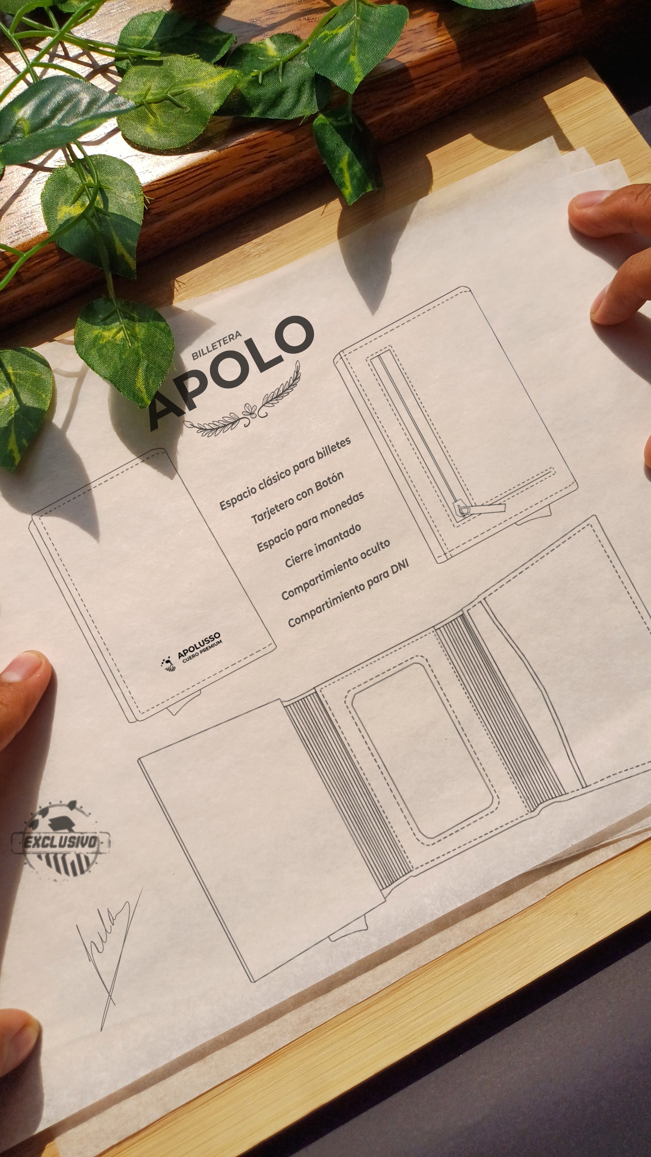 🔹 Billetera Apolo: Cuenta con un tarjetero con botón para hasta 6 tarjetas, un compartimiento para DNI, un compartimiento oculto y otro adicional para tarjetas. Además, pueden guardarse hasta 15 billetes sin doblar.