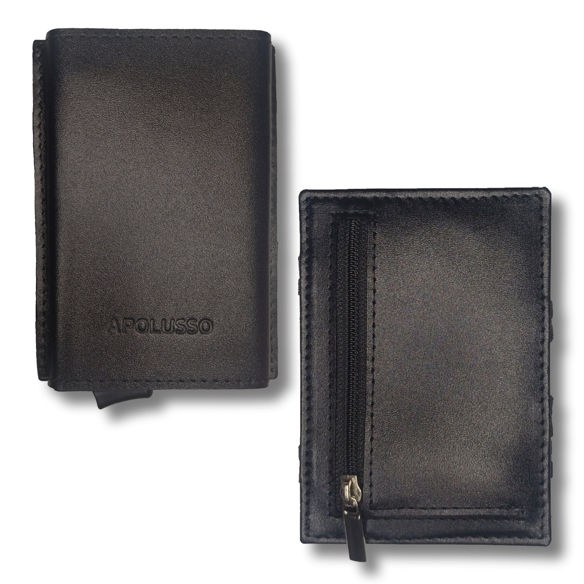 Esta billetera es perfecta para la organización eficiente. Incluye un tarjetero, compartimientos para monedas, y bandas elásticas internas junto con más compartimientos para tarjetas. Ofreciendo una funcionalidad práctica y segura.